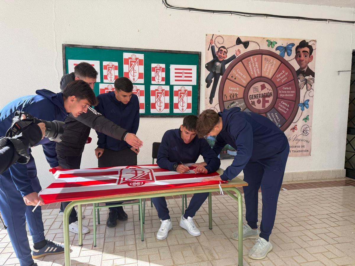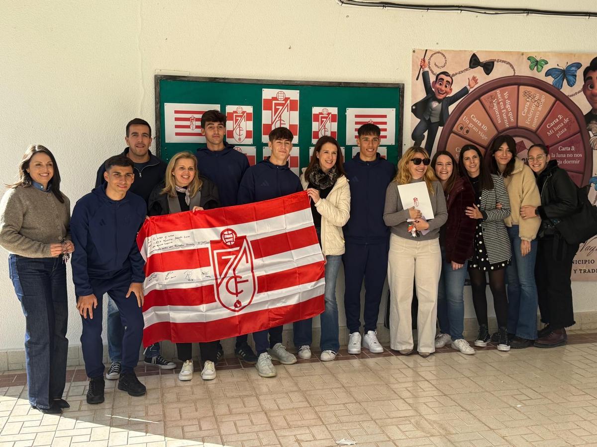 Hoy hemos tenido la suerte de recibir en nuestro colegio a cuatro jugadores del Granada CF – categoría Recreativo, que han querido pasar la mañana con nuestro alumnado.