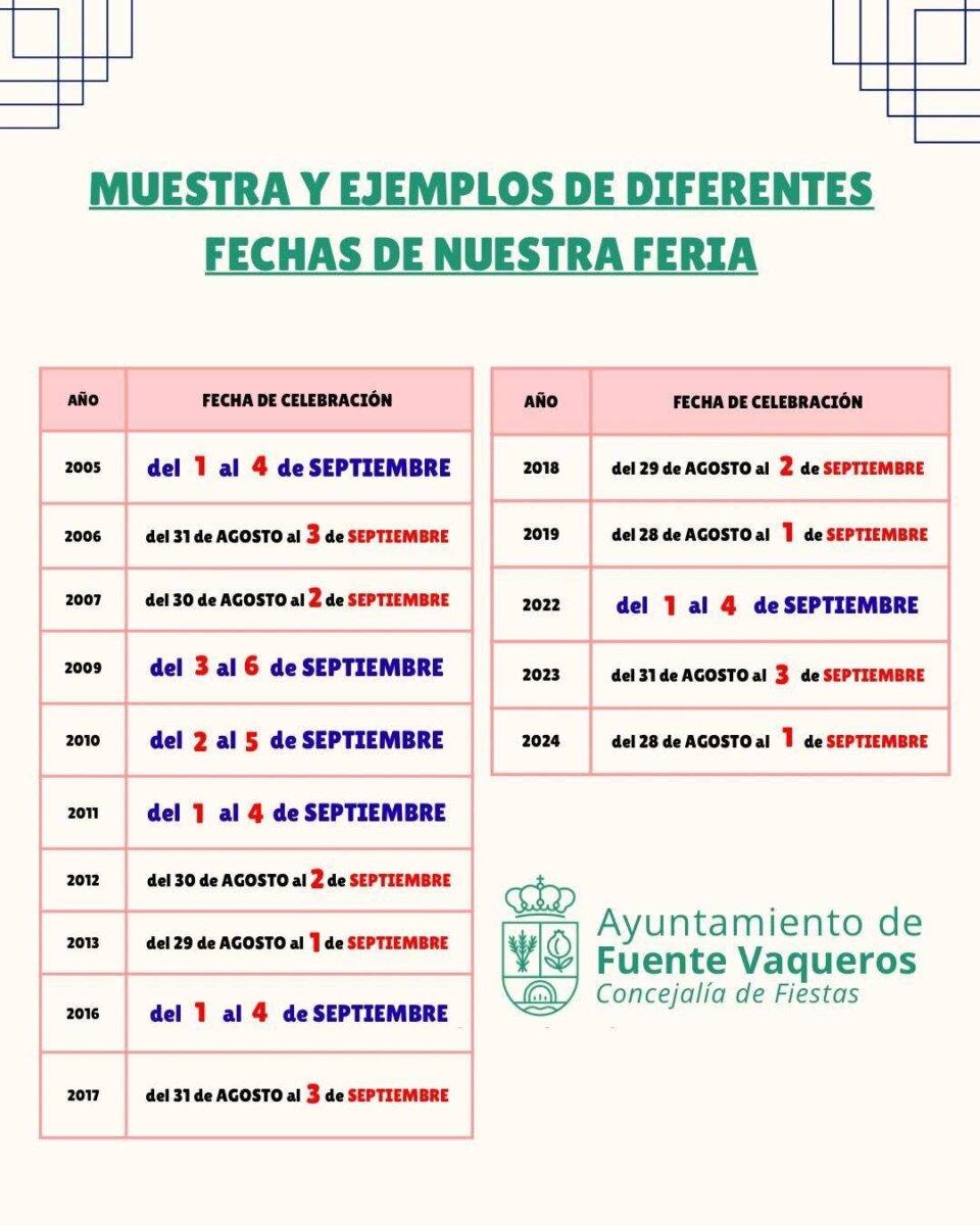 Imagen 2 : fechas celebración feria en años anteriores.