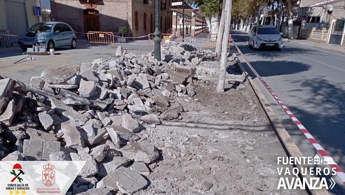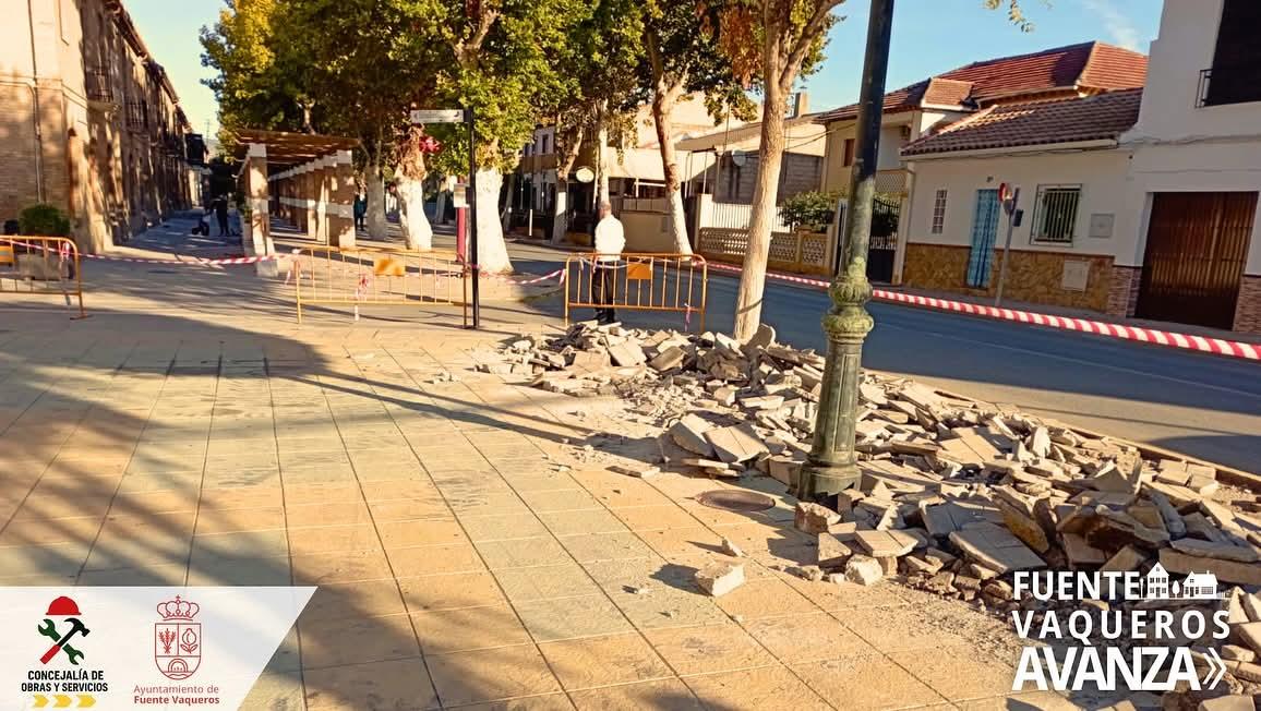 La Concejalía de Obras y Servicios del Ayuntamiento de Fuente Vaqueros ha comenzado las obras de remodelación de dos de las plazoletas del Paseo del Prado, continuando así con el proyecto de renovación y mejora del entorno de esta emblemática zona del municipio.